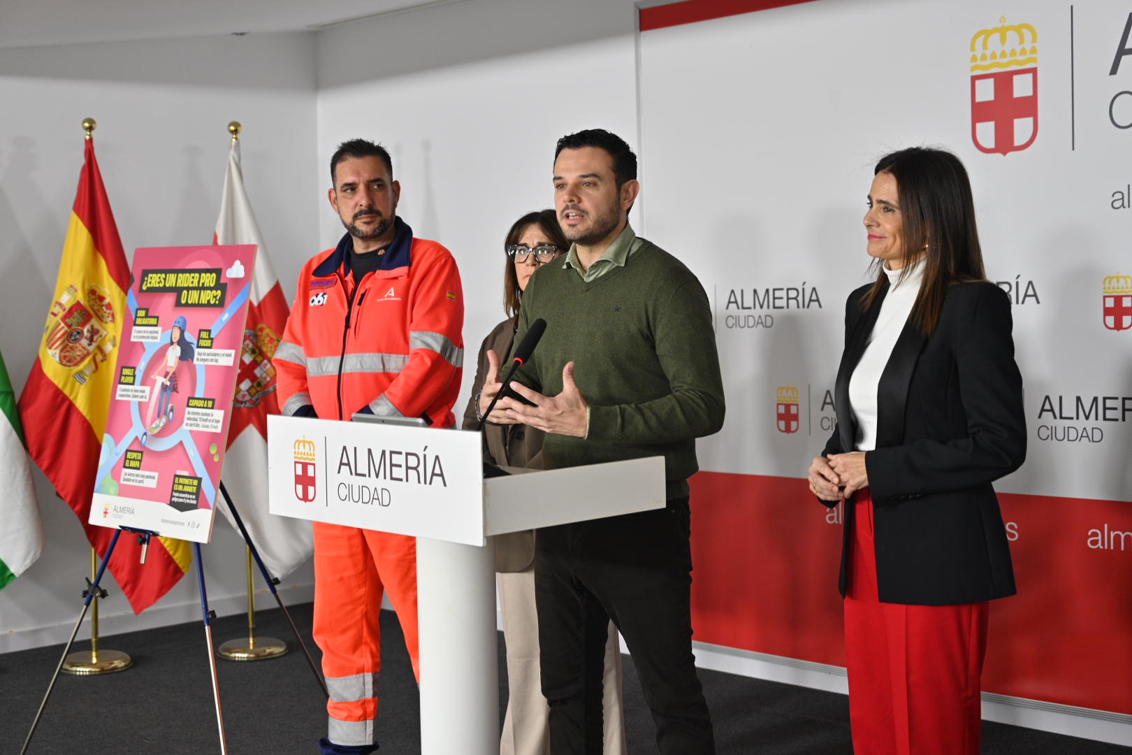 05/03/2026 El Ayuntamiento de Almería ha presentado este jueves una “nueva y pionera” campaña de sensibilización dirigida a la población juvenil con el objetivo de “promover el uso responsable y seguro del patinete eléctrico, poniendo especial atención a la prevención de conductas de riesgo vinculadas a la siniestralidad vial”. Así lo ha trasladado el concejal de Integración Social, Participación, Distritos, Programas y Juventud, Óscar Bleda, ante los medios de comunicación en una comparecencia en la que ha estado acompañado de la concejala de Tráfico, Seguridad Ciudadana y Emergencias, María del Mar García Lorca, así como de representantes del Centro de Emergencias Sanitarias 061.
